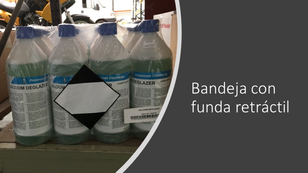 - O, según el 3.4.3, en bandejas con funda retráctil o extensible y, en este caso, la masa bruta total del bulto no debe superar los 20 kg.